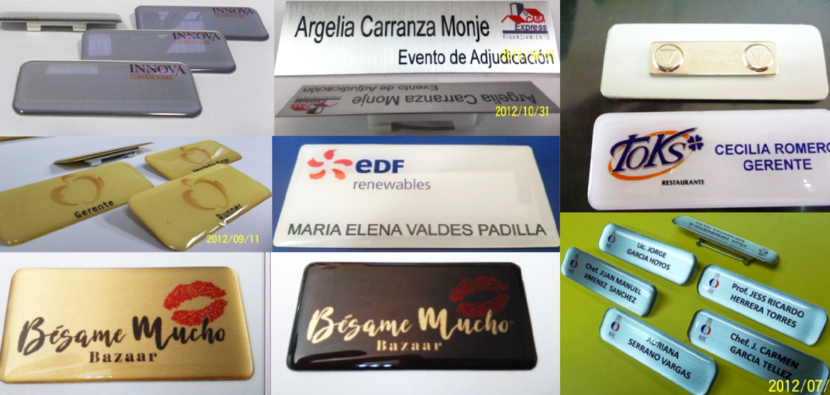Realiza tus gafetes impresos a color, con broche de aguja y una cubierta de resina que aumenta su resistencia.