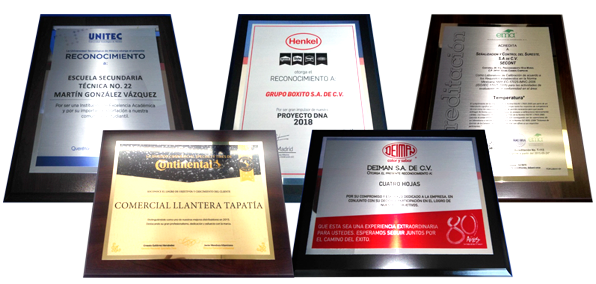 Placas de reconocimiento impresa a color, pueden realizarse en aluminio plata o dorado, con base de madera MDF en tamaño carta.