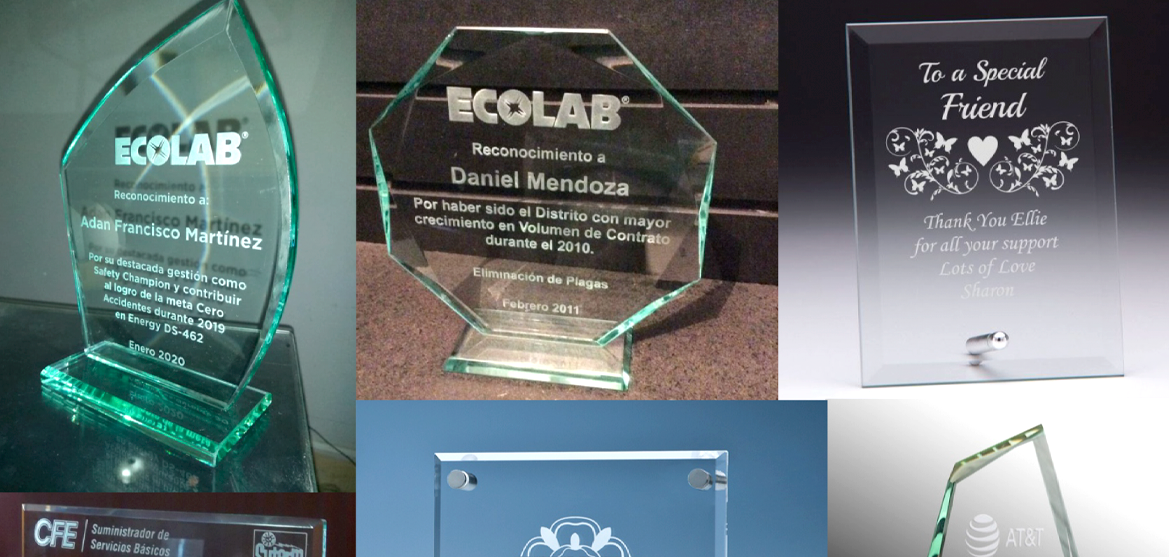 Si buscas un reconocimiento más elegante, podemos realizarlos en corte de cristal de 5mm con grabado natural.